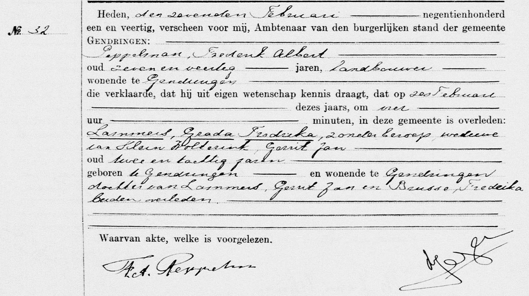 Gerrit Jan overlijdt op 01-04-1905. Fredrika op 26-02-1902, beiden in Gendringen.